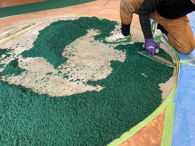 商業施設 意匠性 ゴムチップ舗装工事 外構工事 ゴムチップ舗装工事 新築現場にてゴムチップ舗装工事を行いました。施工の厚みは10mmとなります。円形など型を使用しての施工となります。弾力性もあり安全にご使用できます。 プライマー塗布 ゴムチップ材塗布 ゴムチップ転圧作業(転圧ローラー) 施工完了 前の施工事例 公共施設 施設外部にて天然石+ウレタン樹脂塗床工事 次の施工事例 工場・プラント 排水溝改修工事